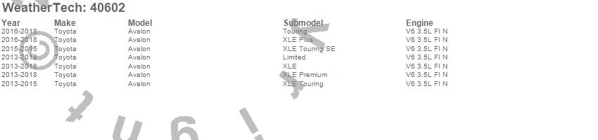 Below is an abbreviated list of applications for the Cargo Liner.Avalon, Toyota, 2018, 2017, 2016, 2015, 2014, 2013