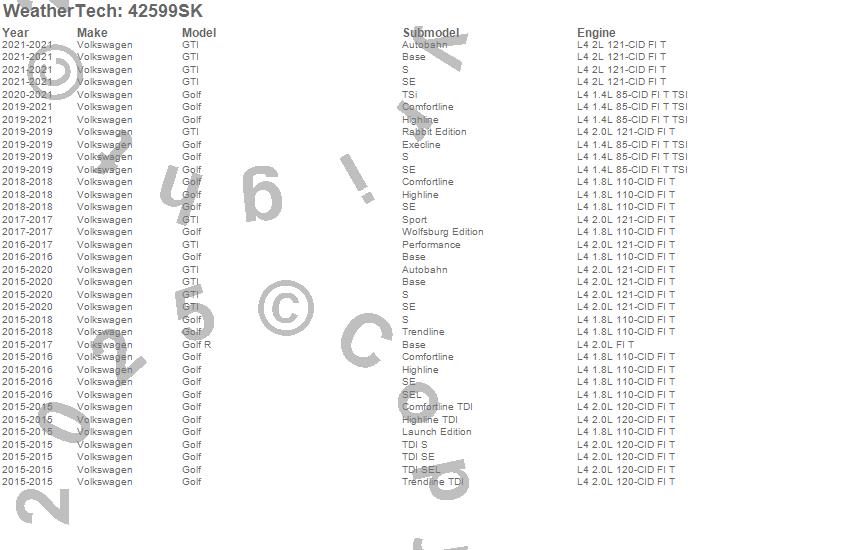 Below is an abbreviated list of applications for the Cargo Liner w/Bumper Protector.Golf, Golf R, GTI, Volkswagen, 2021, 2020, 2019, 2018, 2017, 2016, 2015