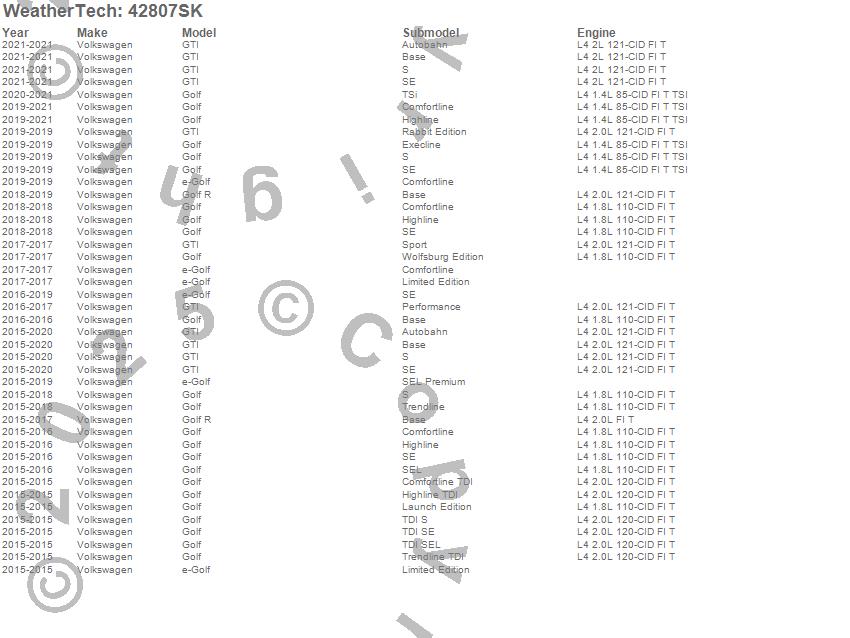 Below is an abbreviated list of applications for the Cargo Liner w/Bumper Protector.e-Golf, Golf, Golf R, GTI, Volkswagen, 2021, 2020, 2019, 2018, 2017, 2016, 2015