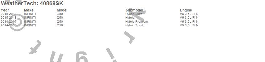 Below is an abbreviated list of applications for the Cargo Liner w/Bumper Protector.Q50, INFINITI, 2019, 2018, 2017, 2016, 2015, 2014
