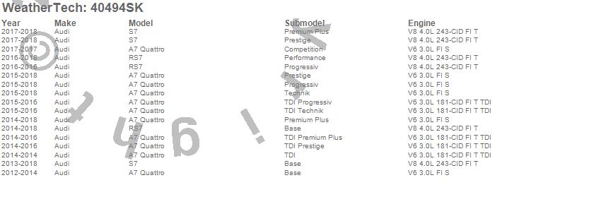 Below is an abbreviated list of applications for the Cargo Liner w/Bumper Protector.A7 Quattro, RS7, S7, Audi, 2018, 2017, 2016, 2015, 2014, 2013, 2012