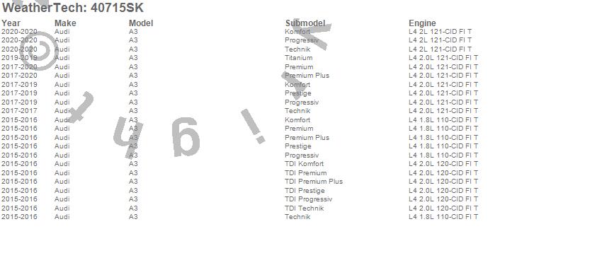 Below is an abbreviated list of applications for the Cargo Liner w/Bumper Protector.A3, Audi, 2020, 2019, 2018, 2017, 2016, 2015