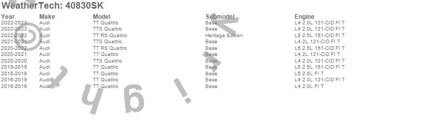Below is an abbreviated list of applications for the Cargo Liner w/Bumper Protector.TT Quattro, TT RS Quattro, TTS Quattro, Audi, 2023, 2022, 2021, 2020, 2019, 2018, 2017, 2016
