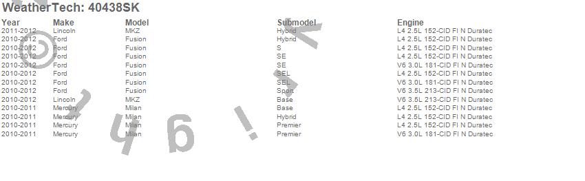 Below is an abbreviated list of applications for the Cargo Liner w/Bumper Protector.Fusion, Milan, MKZ, Ford, Lincoln, Mercury, 2012, 2011, 2010