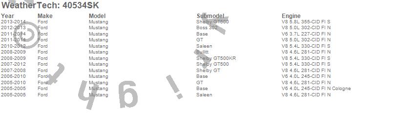 Below is an abbreviated list of applications for the Cargo Liner w/Bumper Protector.Mustang, Ford, 2014, 2013, 2012, 2011, 2010, 2009, 2008, 2007, 2006, 2005