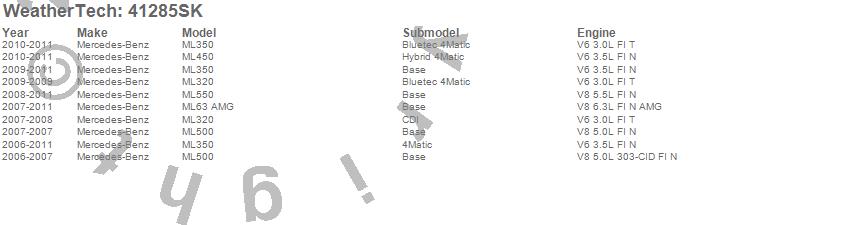 Below is an abbreviated list of applications for the Cargo Liner w/Bumper Protector.ML320, ML350, ML450, ML500, ML550, ML63 AMG, Mercedes-Benz, 2011, 2010, 2009, 2008, 2007, 2006