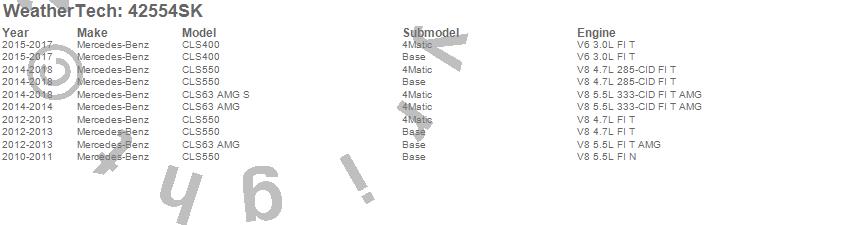 Below is an abbreviated list of applications for the Cargo Liner w/Bumper Protector.CLS400, CLS550, CLS63 AMG, CLS63 AMG S, Mercedes-Benz, 2018, 2017, 2016, 2015, 2014, 2013, 2012, 2011, 2010