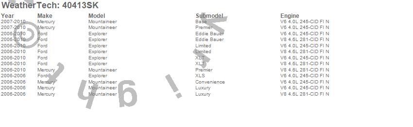 Below is an abbreviated list of applications for the Cargo Liner w/Bumper Protector.Explorer, Mountaineer, Ford, Mercury, 2010, 2009, 2008, 2007, 2006