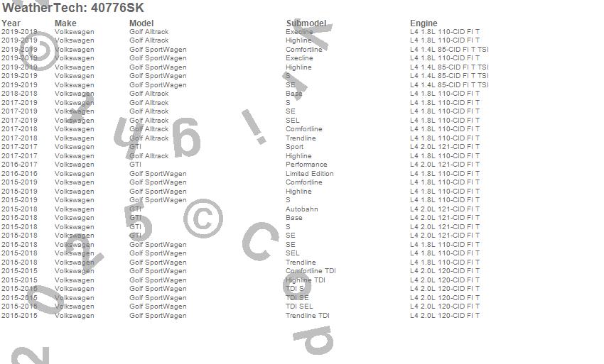 Below is an abbreviated list of applications for the Cargo Liner w/Bumper Protector.Golf Alltrack, Golf SportWagen, GTI, Volkswagen, 2019, 2018, 2017, 2016, 2015