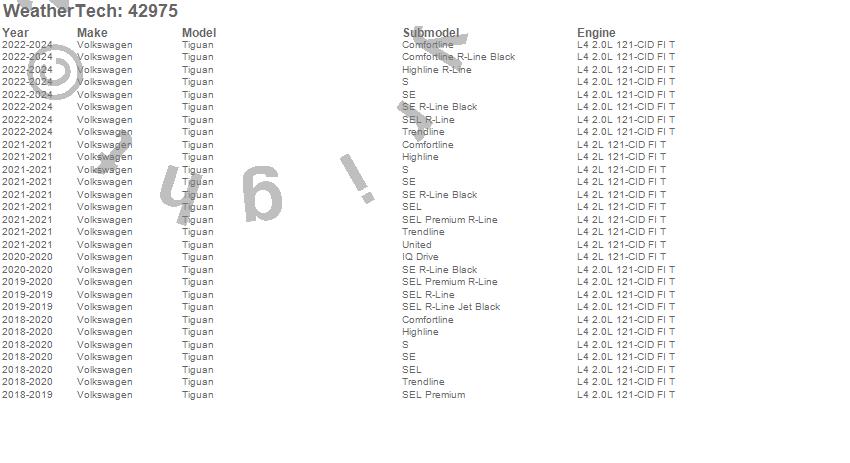 Below is an abbreviated list of applications for the Cargo Liner.Tiguan, Volkswagen, 2024, 2023, 2022, 2021, 2020, 2019, 2018