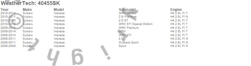 Below is an abbreviated list of applications for the Cargo Liner w/Bumper Protector.Impreza, Subaru, 2014, 2013, 2012, 2011, 2010, 2009, 2008