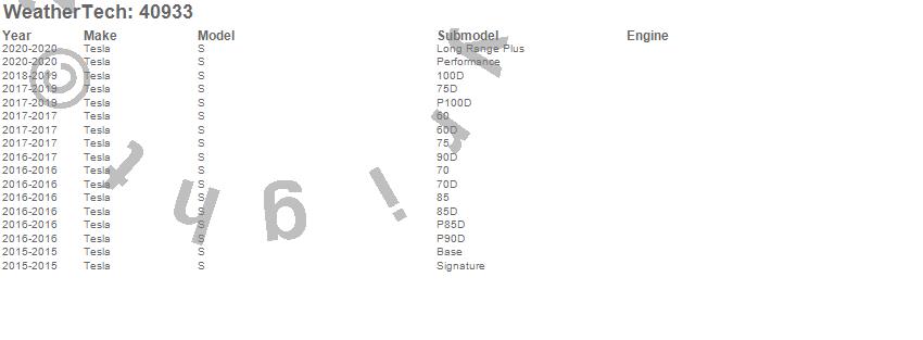 Below is an abbreviated list of applications for the Cargo Liner.S, Tesla, 2020, 2019, 2018, 2017, 2016, 2015