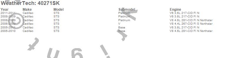 Below is an abbreviated list of applications for the Cargo Liner w/Bumper Protector.STS, Cadillac, 2011, 2010, 2009, 2008, 2007, 2006, 2005
