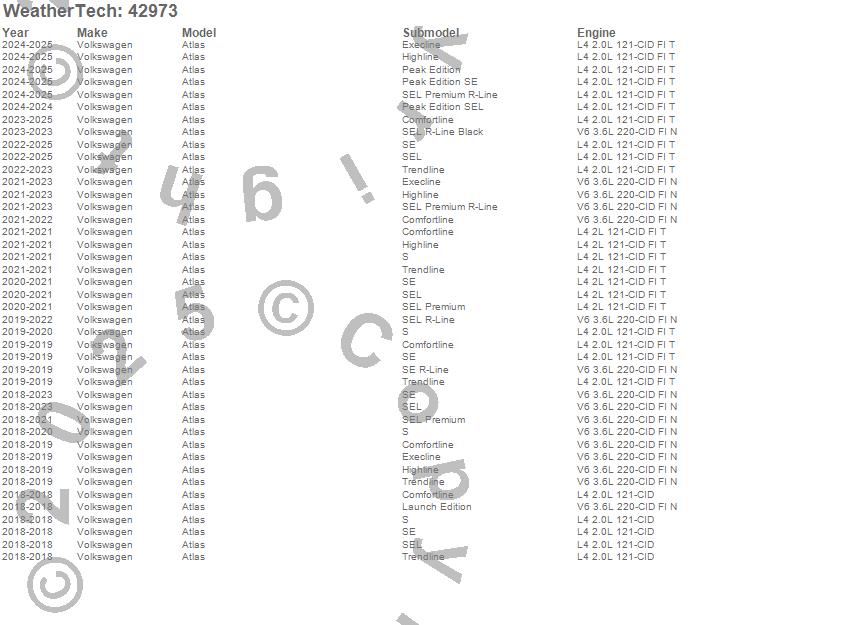 Below is an abbreviated list of applications for the Cargo Liner.Atlas, Volkswagen, 2026, 2025, 2024, 2023, 2022, 2021, 2020, 2019, 2018