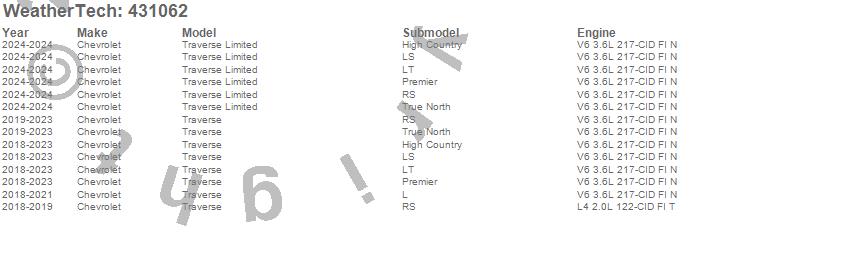 Below is an abbreviated list of applications for the Cargo Liner.Traverse, Traverse Limited, Chevrolet, 2024, 2023, 2022, 2021, 2020, 2019, 2018