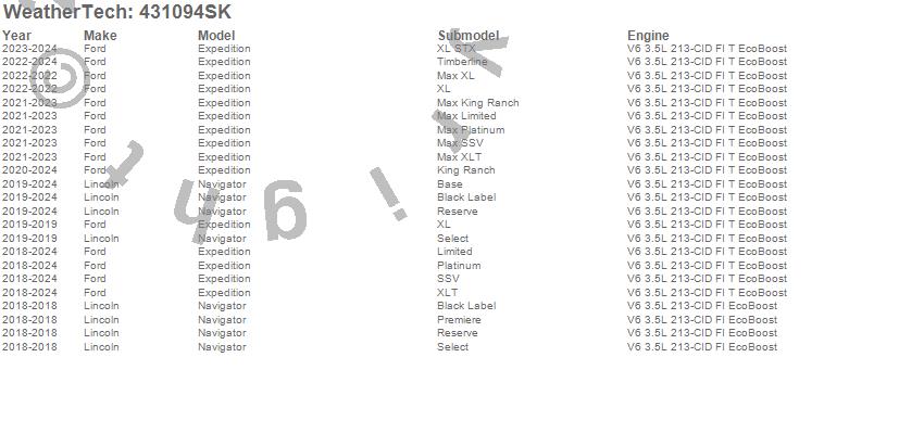 Below is an abbreviated list of applications for the Cargo Liner w/Bumper Protector.Expedition, Navigator, Ford, Lincoln, 2024, 2023, 2022, 2021, 2020, 2019, 2018