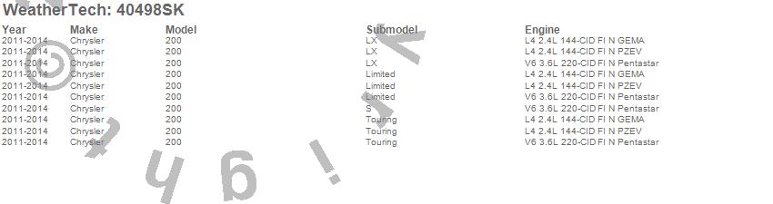 Below is an abbreviated list of applications for the Cargo Liner w/Bumper Protector.200, Chrysler, 2014, 2013, 2012, 2011