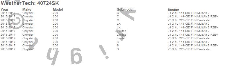 Below is an abbreviated list of applications for the Cargo Liner w/Bumper Protector.200, Chrysler, 2017, 2016, 2015