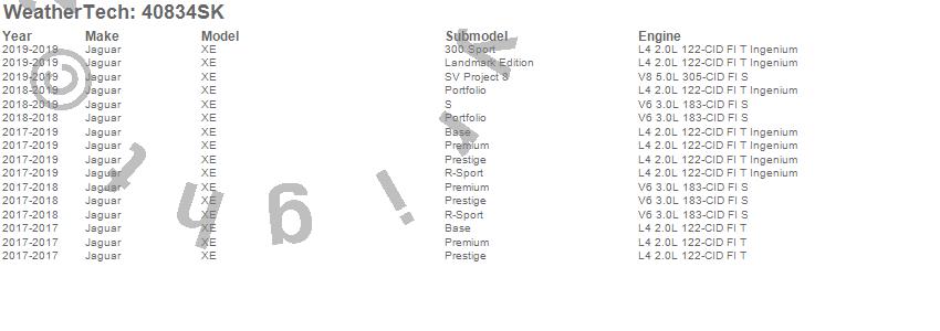 Below is an abbreviated list of applications for the Cargo Liner w/Bumper Protector.XE, Jaguar, 2019, 2018, 2017