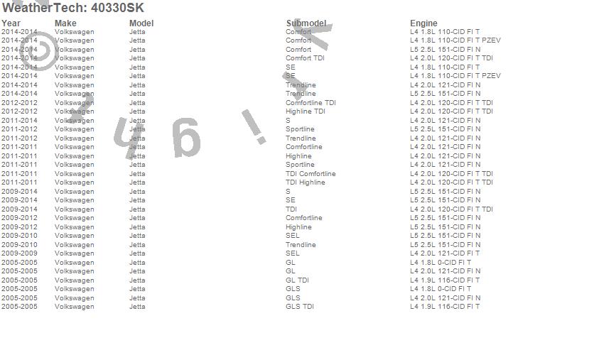 Below is an abbreviated list of applications for the Cargo Liner w/Bumper Protector.Jetta, Volkswagen, 2014, 2013, 2012, 2011, 2010, 2009, 2005