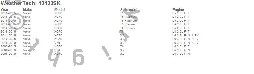 Below is an abbreviated list of applications for the Cargo Liner w/Bumper Protector.V70, XC70, Volvo, 2016, 2015, 2014, 2013, 2012, 2011, 2010, 2009, 2008