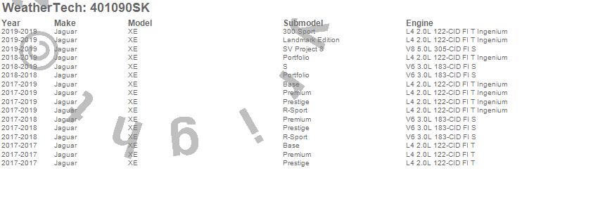 Below is an abbreviated list of applications for the Cargo Liner w/Bumper Protector.XE, Jaguar, 2019, 2018, 2017