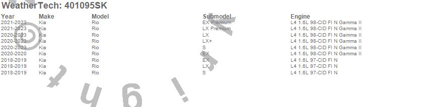 Below is an abbreviated list of applications for the Cargo Liner w/Bumper Protector.Rio, Kia, 2023, 2022, 2021, 2020, 2019, 2018