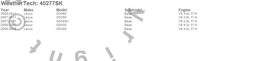 Below is an abbreviated list of applications for the Cargo Liner w/Bumper Protector.GS300, GS350, GS430, GS450h, GS460, Lexus, 2011, 2010, 2009, 2008, 2007, 2006