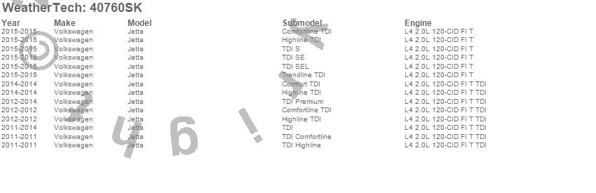 Below is an abbreviated list of applications for the Cargo Liner w/Bumper Protector.Jetta, Volkswagen, 2015, 2014, 2013, 2012, 2011