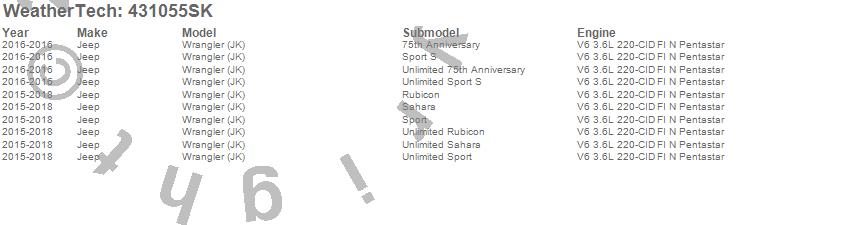 Below is an abbreviated list of applications for the Cargo Liner w/Bumper Protector.Wrangler (JK), Jeep, 2018, 2017, 2016, 2015
