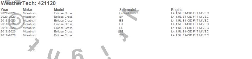 Below is an abbreviated list of applications for the Cargo Liner.Eclipse Cross, Mitsubishi, 2020, 2019, 2018