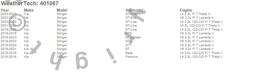 Below is an abbreviated list of applications for the Cargo Liner.Stinger, Kia, 2023, 2022, 2021, 2020, 2019, 2018