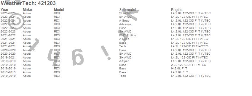 Below is an abbreviated list of applications for the Cargo Liner.RDX, Acura, 2026, 2025, 2024, 2023, 2022, 2021, 2020, 2019