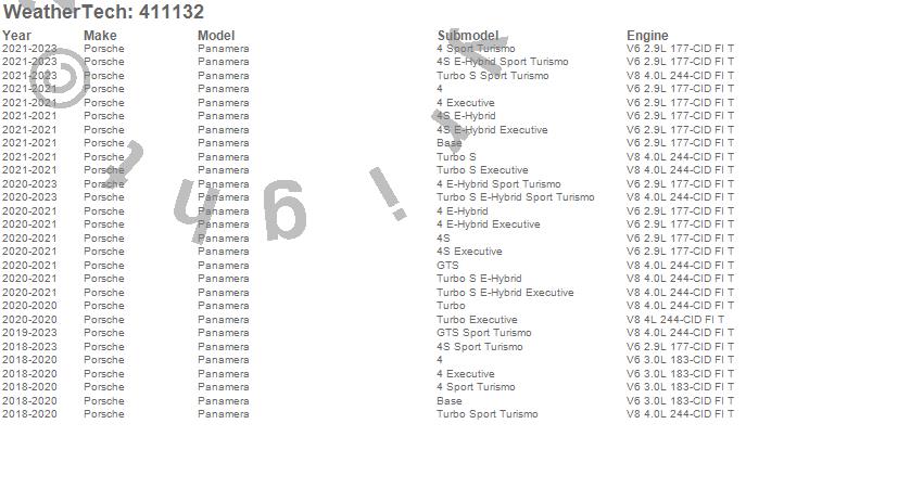 Below is an abbreviated list of applications for the Cargo Liner.Panamera, Porsche, 2023, 2022, 2021, 2020, 2019, 2018
