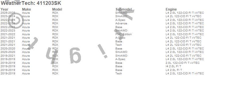 Below is an abbreviated list of applications for the Cargo Liner w/Bumper Protector.RDX, Acura, 2026, 2025, 2024, 2023, 2022, 2021, 2020, 2019