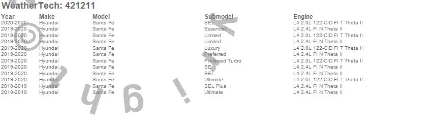 Below is an abbreviated list of applications for the Cargo Liner.Santa Fe, Hyundai, 2020, 2019