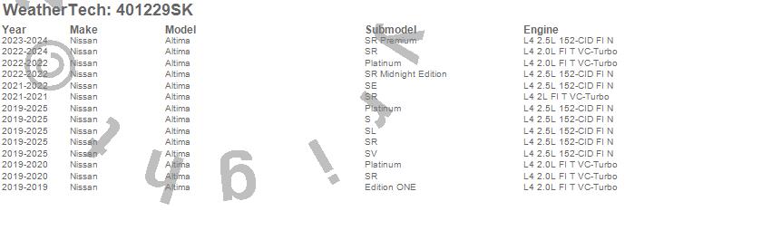 Below is an abbreviated list of applications for the Cargo Liner w/Bumper Protector.Altima, Nissan, 2025, 2024, 2023, 2022, 2021, 2020, 2019