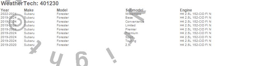 Below is an abbreviated list of applications for the Cargo Liner.Forester, Subaru, 2024, 2023, 2022, 2021, 2020, 2019