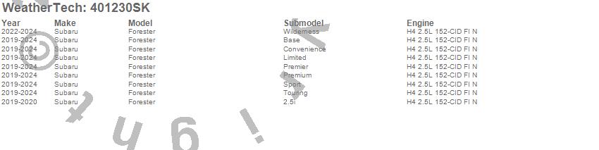 Below is an abbreviated list of applications for the Cargo Liner w/Bumper Protector.Forester, Subaru, 2024, 2023, 2022, 2021, 2020, 2019