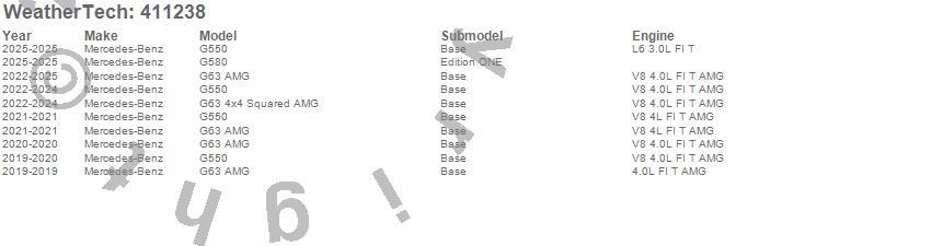 Below is an abbreviated list of applications for the Cargo Liner.G550, G580, G63 4x4 Squared AMG, G63 AMG, Mercedes-Benz, 2025, 2024, 2023, 2022, 2021, 2020, 2019