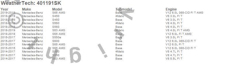 Below is an abbreviated list of applications for the Cargo Liner w/Bumper Protector.S450, S550, S550e, S560, S600, S63 AMG, S65 AMG, Mercedes-Benz, 2019, 2018, 2017, 2016, 2015, 2014