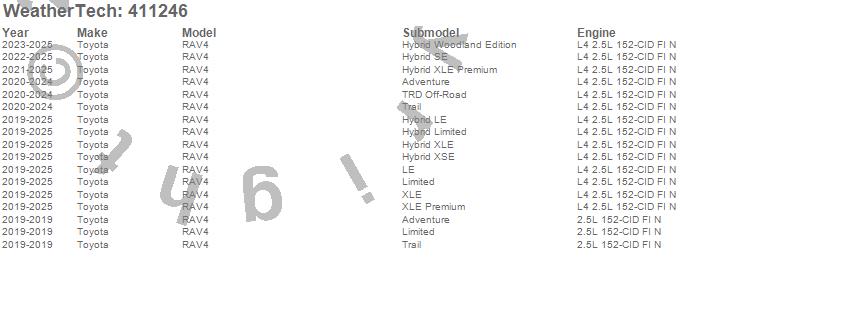 Below is an abbreviated list of applications for the Cargo Liner.RAV4, Toyota, 2025, 2024, 2023, 2022, 2021, 2020, 2019