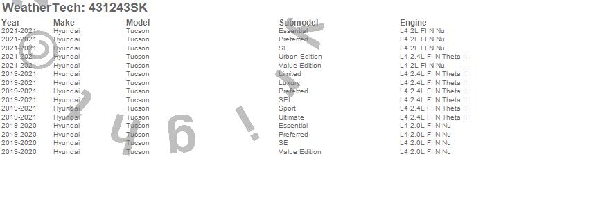 Below is an abbreviated list of applications for the Cargo Liner w/Bumper Protector.Tucson, Hyundai, 2021, 2020, 2019
