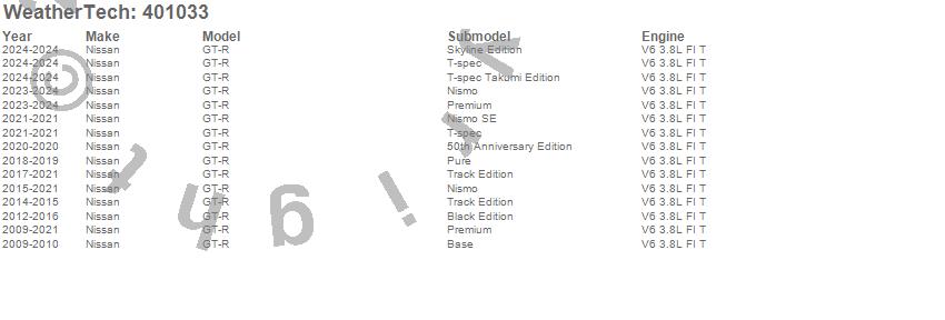 Below is an abbreviated list of applications for the Cargo Liner.GT-R, Nissan, 2024, 2023, 2021, 2020, 2019, 2018, 2017, 2016, 2015, 2014, 2013, 2012, 2011, 2010, 2009