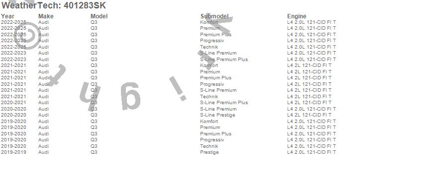 Below is an abbreviated list of applications for the Cargo Liner w/Bumper Protector.Q3, Audi, 2025, 2024, 2023, 2022, 2021, 2020, 2019