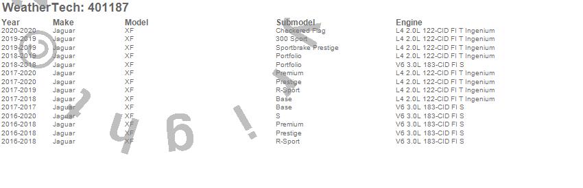Below is an abbreviated list of applications for the Cargo Liner.XF, Jaguar, 2020, 2019, 2018, 2017, 2016
