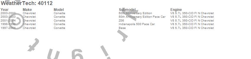 Below is an abbreviated list of applications for the Cargo Liner.Corvette, Chevrolet, 2004, 2003, 2002, 2001, 2000, 1999, 1998, 1997