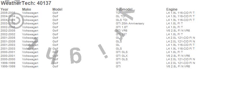 Below is an abbreviated list of applications for the Cargo Liner.Golf, Volkswagen, 2006, 2005, 2004, 2003, 2002, 2001, 2000, 1999