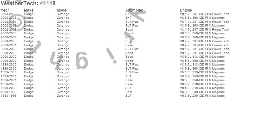 Below is an abbreviated list of applications for the Cargo Liner.Durango, Dodge, 2003, 2002, 2001, 2000, 1999, 1998