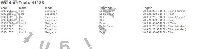 Below is an abbreviated list of applications for the Cargo Liner.Expedition, Navigator, Ford, Lincoln, 2002, 2001, 2000, 1999